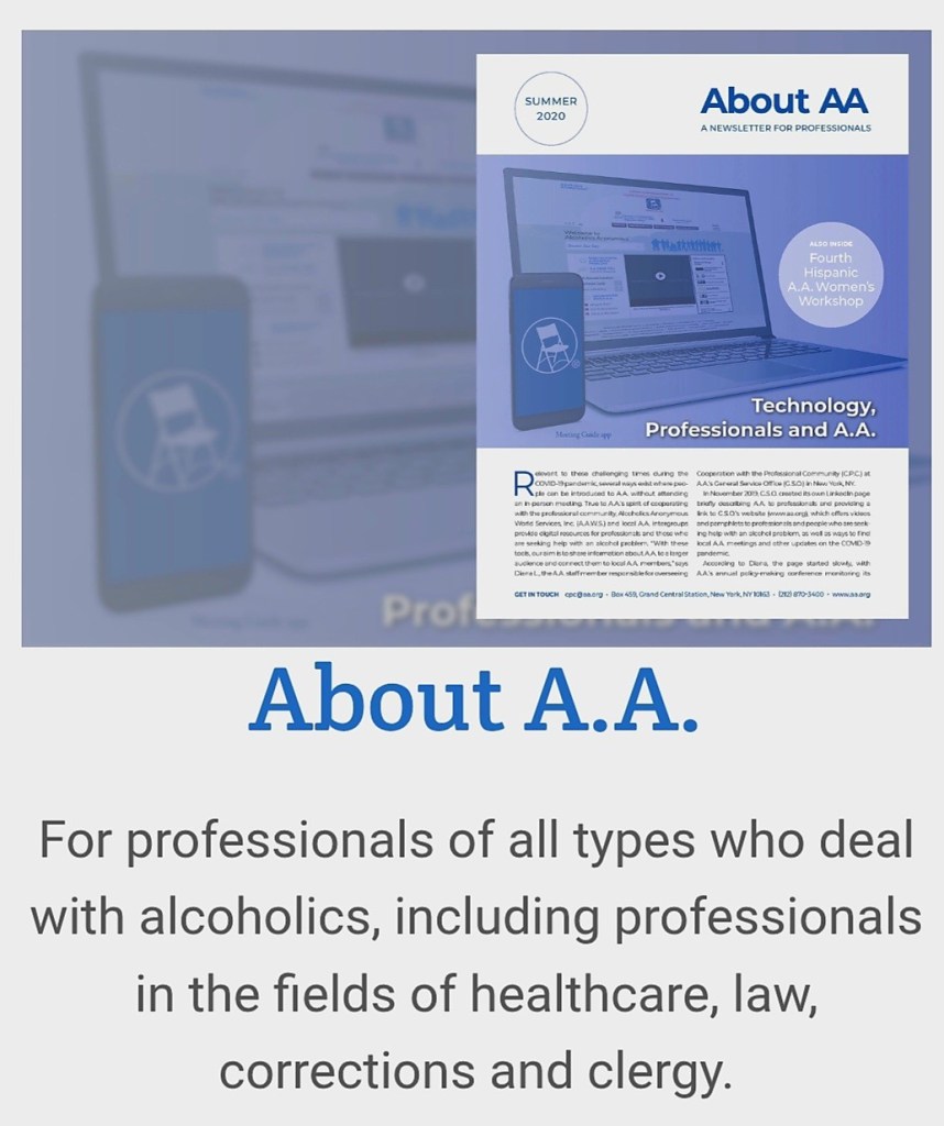 FOR PROFESSIONALS WHO WOULD LIKE INFORMATION ABOUT A.A. https://www.aa.org/about-aa