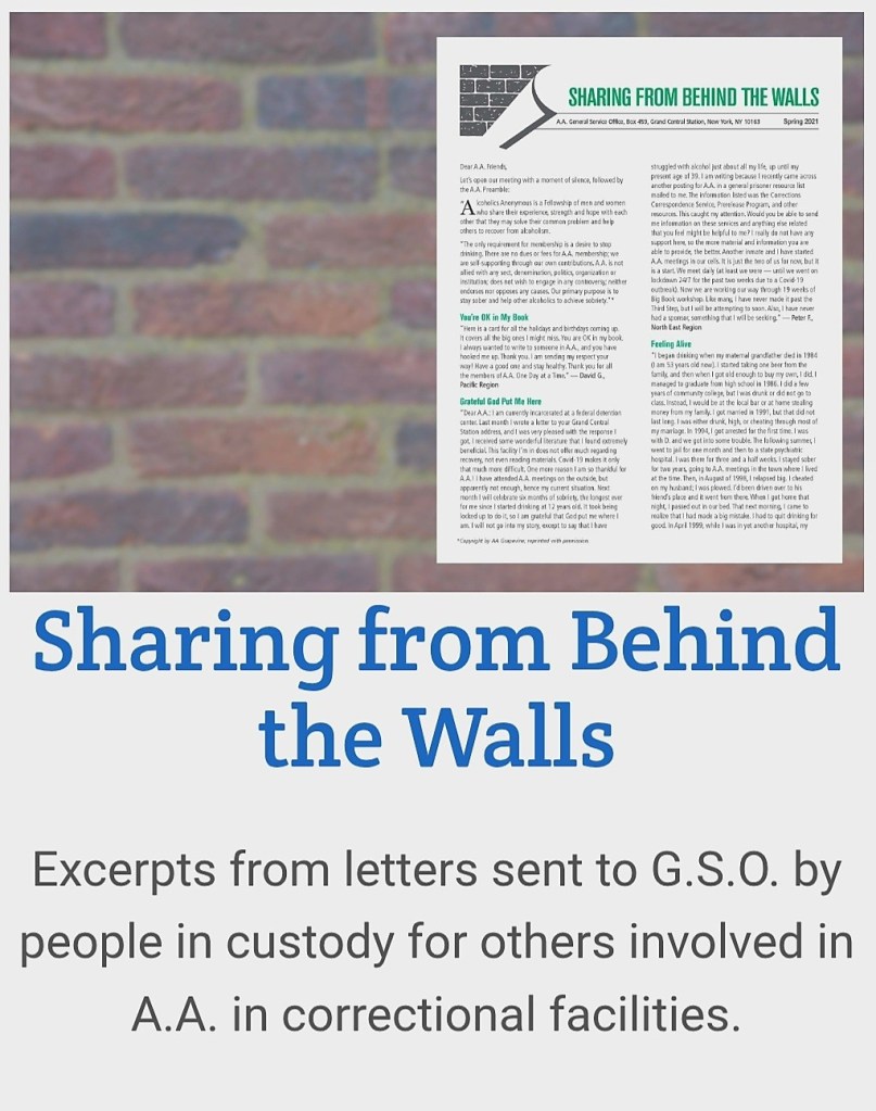 MESSAGES FROM BEHIND THE WALLS https://www.aa.org/sharing-from-behind-the-walls