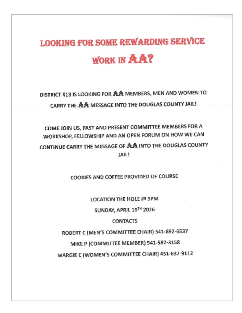 Roseburg’s Brown Bagger Group of Alcoholics Anonymous